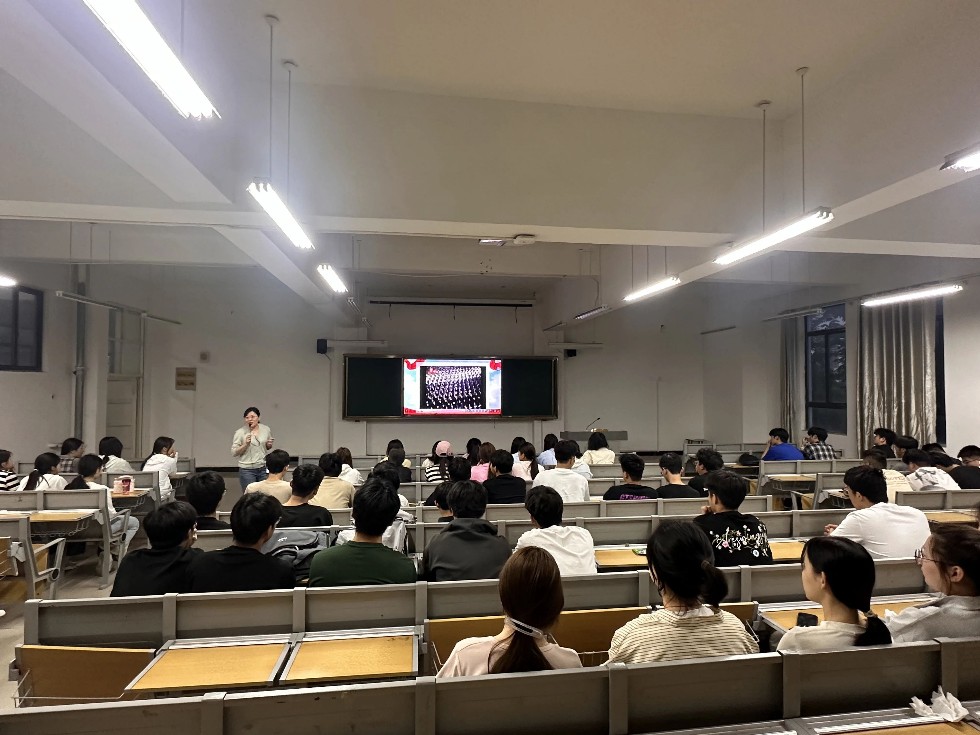 宣讲过程中,刘睿智以被选中参加国庆阅兵的经历为主题,讲述了自己如何被选中,以及刻苦训练的过程,并和大家分享参加阅兵的感受。他勉励新生合理规划学习和生活,确定符合自身的职业发展方向,更好地实现人生价值。