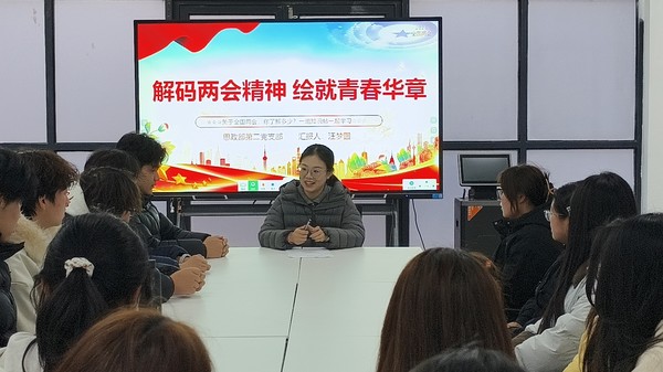 为深入学习宣传贯彻2026年全国“两会”精神,推动“两会”精神进校园、进课堂、进头脑,3月18日,思政部第二党支部党员教师汪梦圆以“解码两会精神 绘就青春华章”为主题,为学生开展专题宣讲,引导广大学生凝聚思想共识、勇担时代使命。